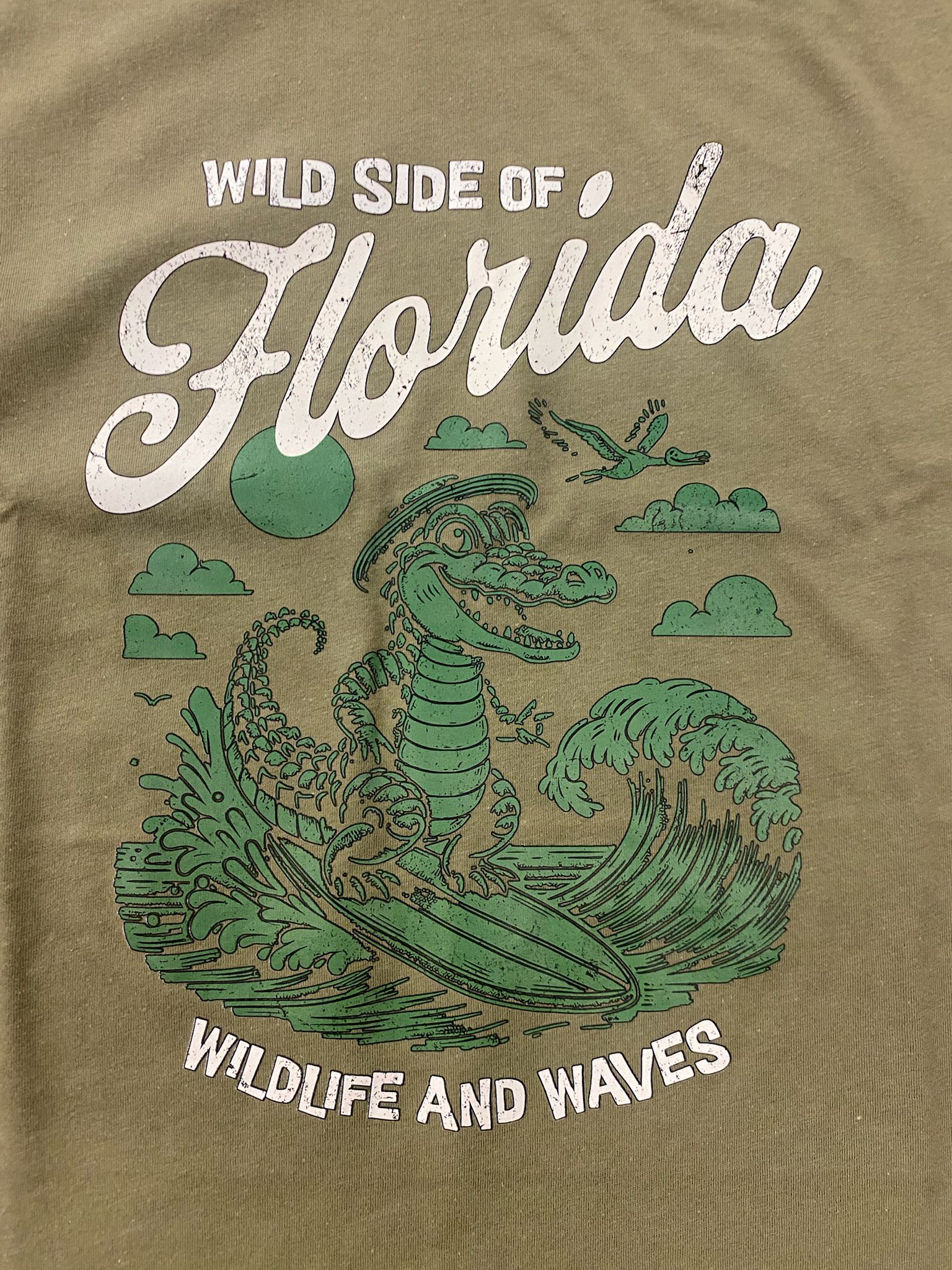 Bring the adventure of the Sunshine State to your style with the Wild Side of Florida Tee. Featuring a bold alligator graphic surrounded by palms, waves, and wildlife, this shirt captures the untamed spirit of Florida’s coasts. Perfect for beach days, casual outings, or streetwear fits, it’s designed to stand out while keeping you comfortable